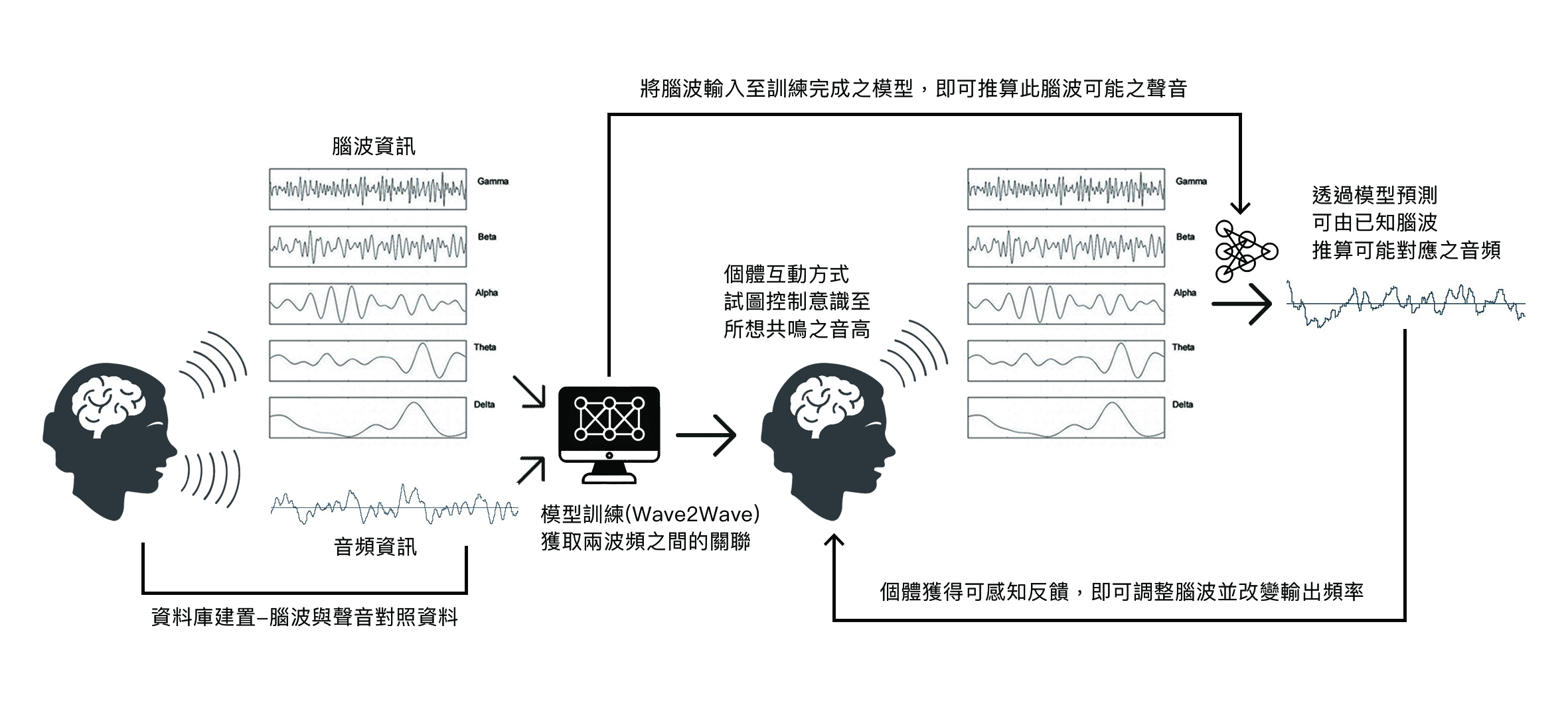 2. Paired Dataset Construction: each entry contains brainwave frequency patterns and corresponding vocal frequency.