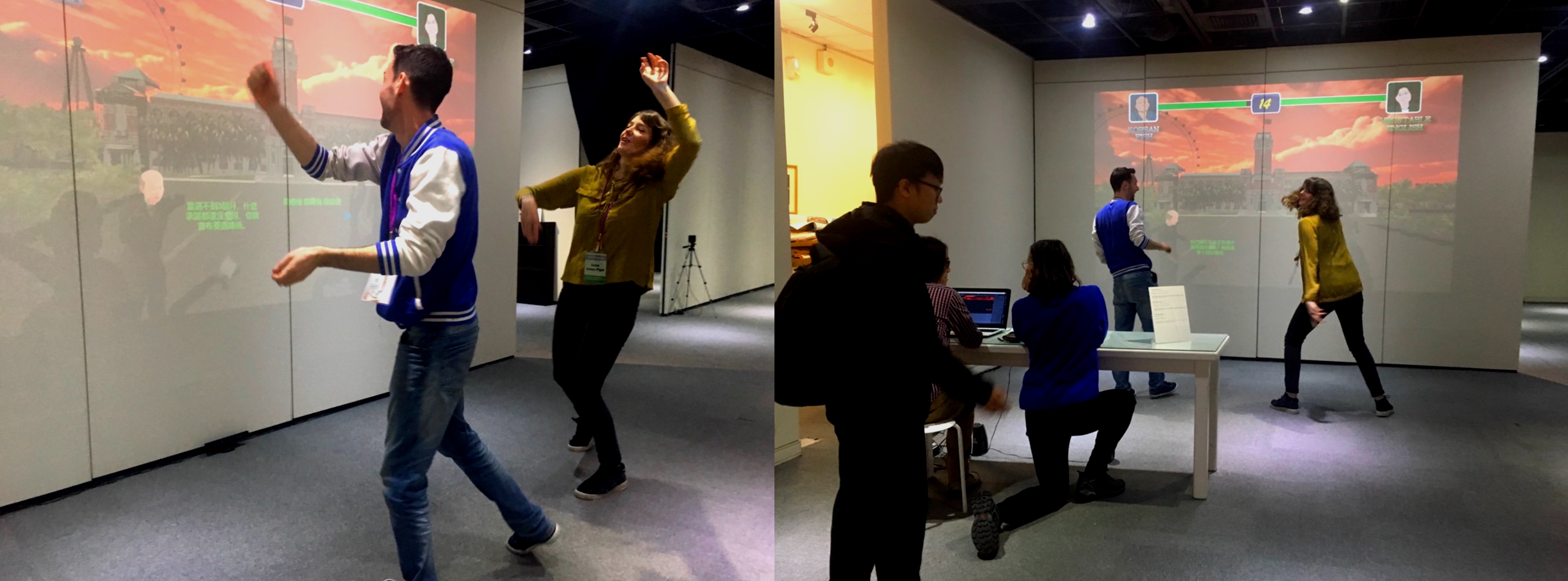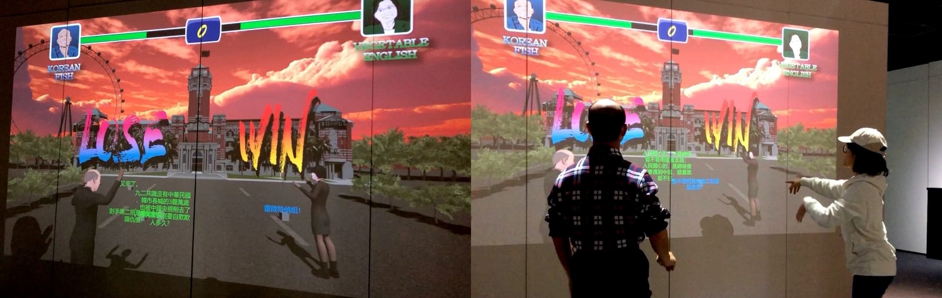 The installation is built with Unity and Kinect, mapping players’ body movements onto full-scale avatars of the two candidates. By physically “pushing,” players trigger attacks that launch objects containing phrases scraped from online discourse—campaign slogans, criticisms, and policy-based attacks exchanged between both political camps.