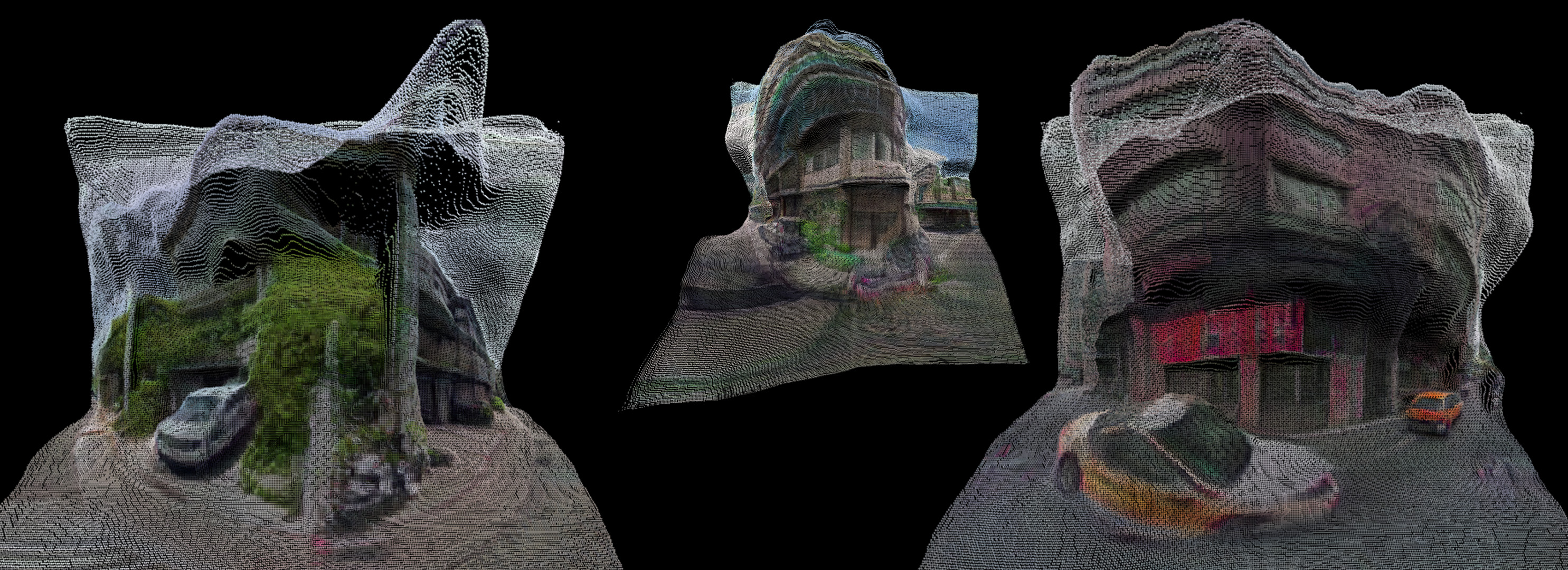 2. Depth-based Point-cloud Visualization — depth maps derived from the AI-generated images were combined with textures to form navigable 3D fragments.