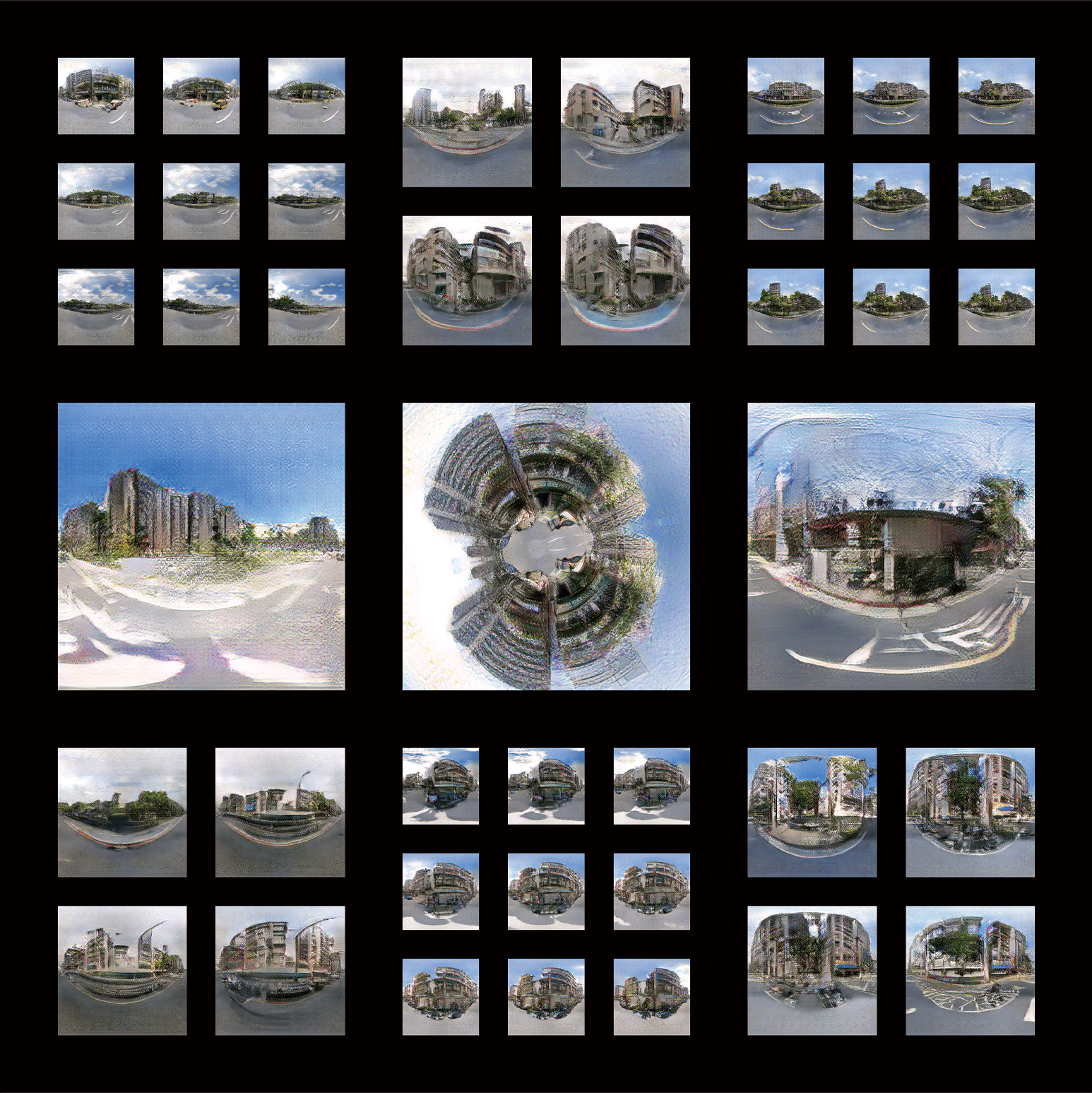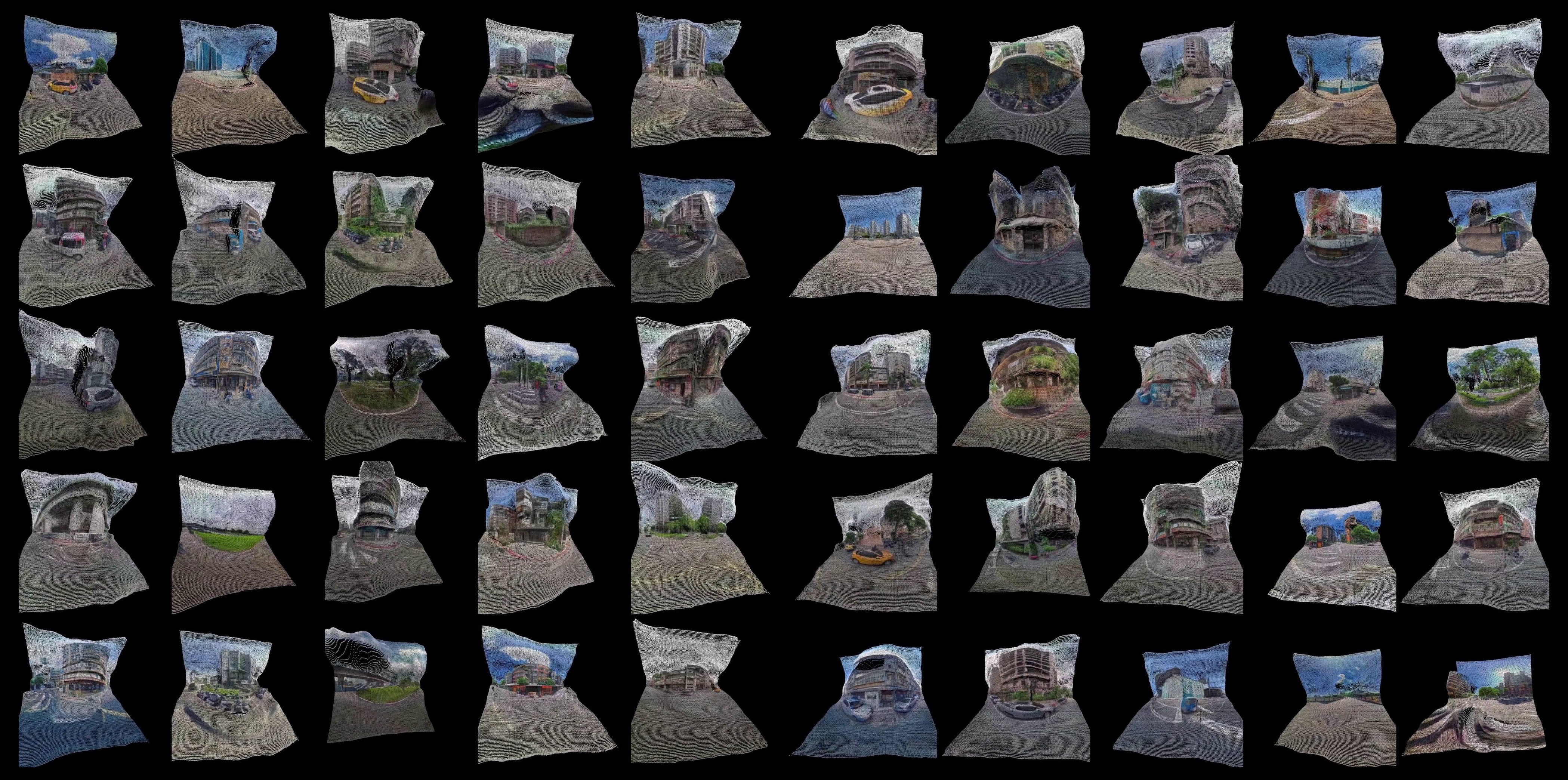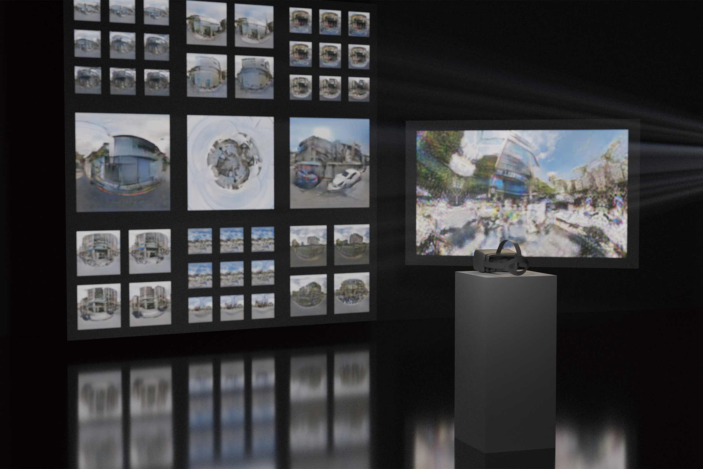 Over 100,000 Taipei street-view panoramas were curated and standardized for model training. A DCGAN model generated initial synthetic visuals, with latent-space interpolation producing smooth spatial transitions. A pre-trained enhancement model refined resolution and detail. Two exhibition formats materialize the results: